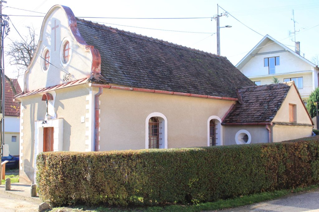 Habánska kaplnka nesie na štíte datovanie 1837. Nie je však úplne jasné, či ide o stavbu, ktorú už v roku 1767 iniciovala Mária Terézia, keď habáni prijali katolícku vieru. Kaplnka je zasvätená Svätému krížu a dodnes sa v nej zachovalo pôvodné sanktuárium zo starej modlitebne, rokokový mobiliár aj barokové sochy z 18. storočia.