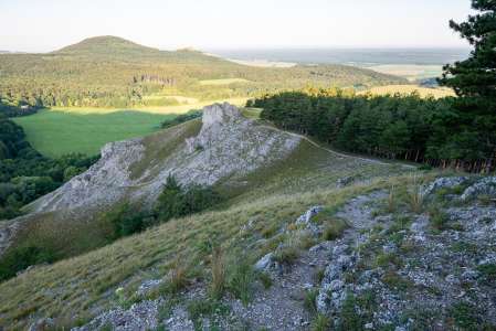 • Posledný úsek je trochu strmší a úzky, preto treba zvýšiť opatrnosť. Odmenou sú však úchvatné výhľady na Plavecký hrad a Záhorie.