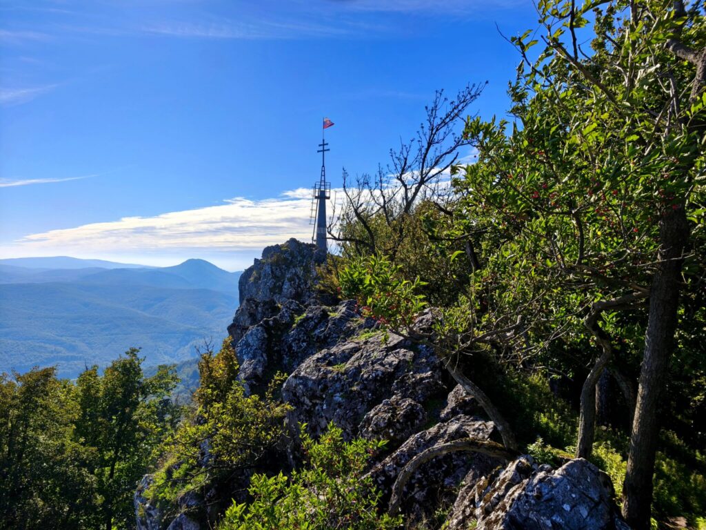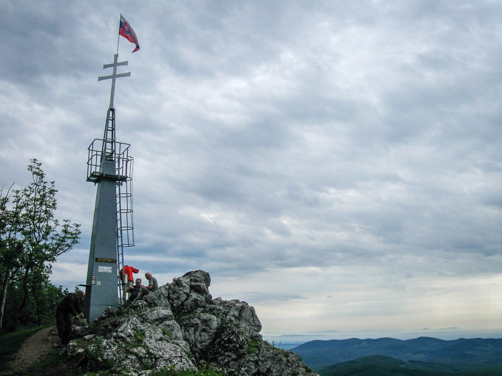 Vrchol zdobí slovenský dvojkríž a národná vlajka, čo dodáva miestu slávnostný nádych.