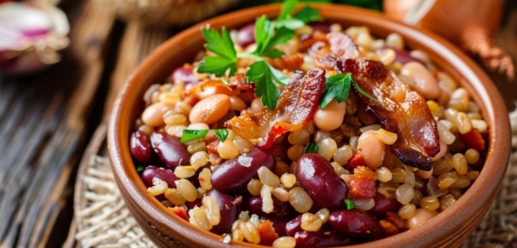 Jedno z typických jedál nášho regiónu – pripravuje sa zmiešaním fazule, krúp, škvarkov a cibule.