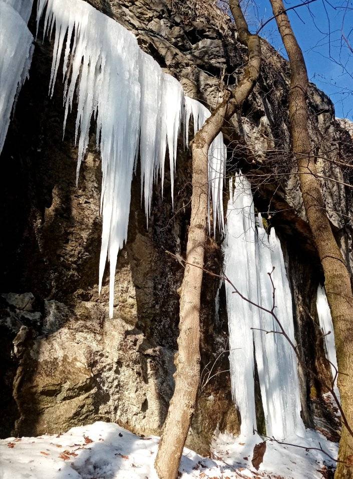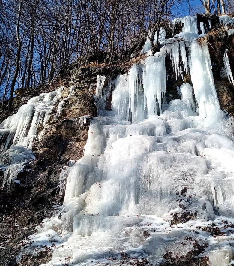 V zimných mesiacoch sa Borinský kameňolom mení na skutočné kráľovstvo ľadu. Strmé steny lomu zdobia nádherné ľadopády, ktoré vytvárajú čarovnú scenériu ako stvorenú pre milovníkov fotografie. Tajomný nádych celému miestu dodávajú chátrajúce budovy osady Medené Hámre a pokojné jazierko v spodnej časti lomu, ktoré spolu vytvárajú až filmovo pôsobivé prostredie.