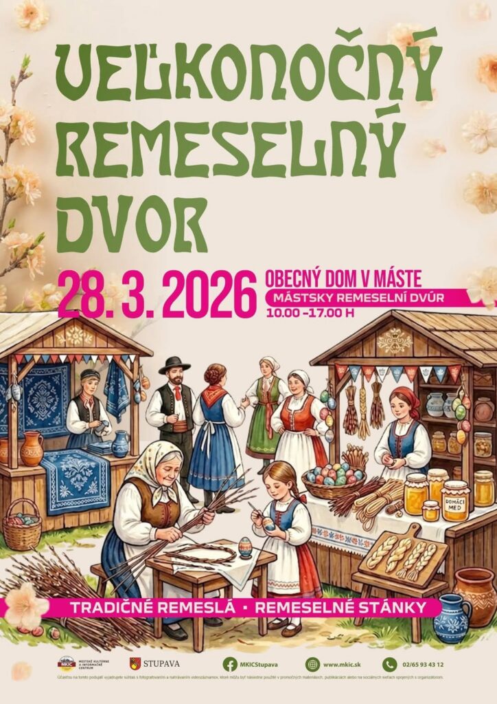 V Máste sa v ten istý deň uskutoční Veľkonočný remeselný dvor, ktorý prinesie remeselné stánky, ukážky tradičných zručností a príjemnú jarnú atmosféru. Podujatie bude prebiehať od 10.00 do 17.00 hod. v Obecnom dome v Máste. Súčasťou programu bude aj detské divadelné predstavenie Jurko a prasiatka, ktoré sa začne o 15.00 hod.