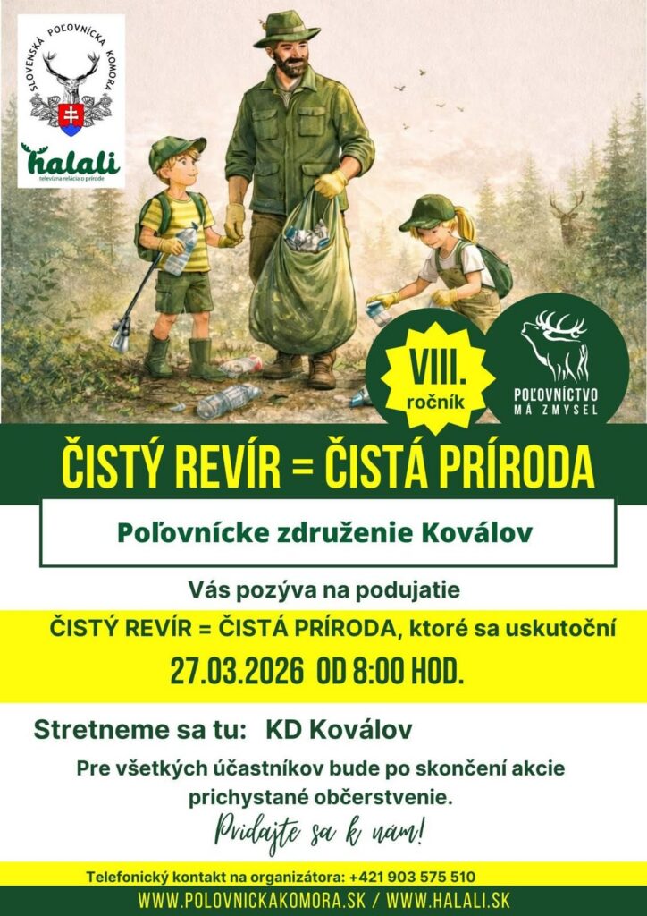 Kto chce víkend stráviť aktívne a zároveň urobiť niečo užitočné, môže sa zapojiť do podujatí Čistý revír = čistá príroda. V Kováľove sa akcia uskutoční v piatok 27. marca 2026 od 8.00 hod. pri KD Kováľov, pričom po skončení bude pre účastníkov pripravené občerstvenie.