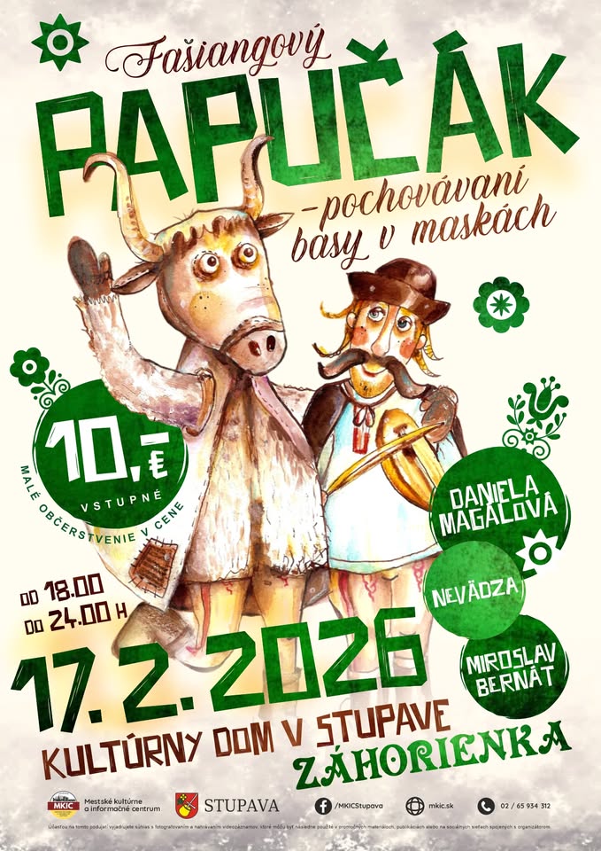 Fašiangový papučák – pochovávaní basy v maskách Stupava + Pridať do Kalendára Google + export iCal / Outlook 00 dni 00 hodiny 00 minút 00 sekúnd Dátum Ut 02 2026 Čas 18:00 - 23:55 Zdieľajte túto udalosť
