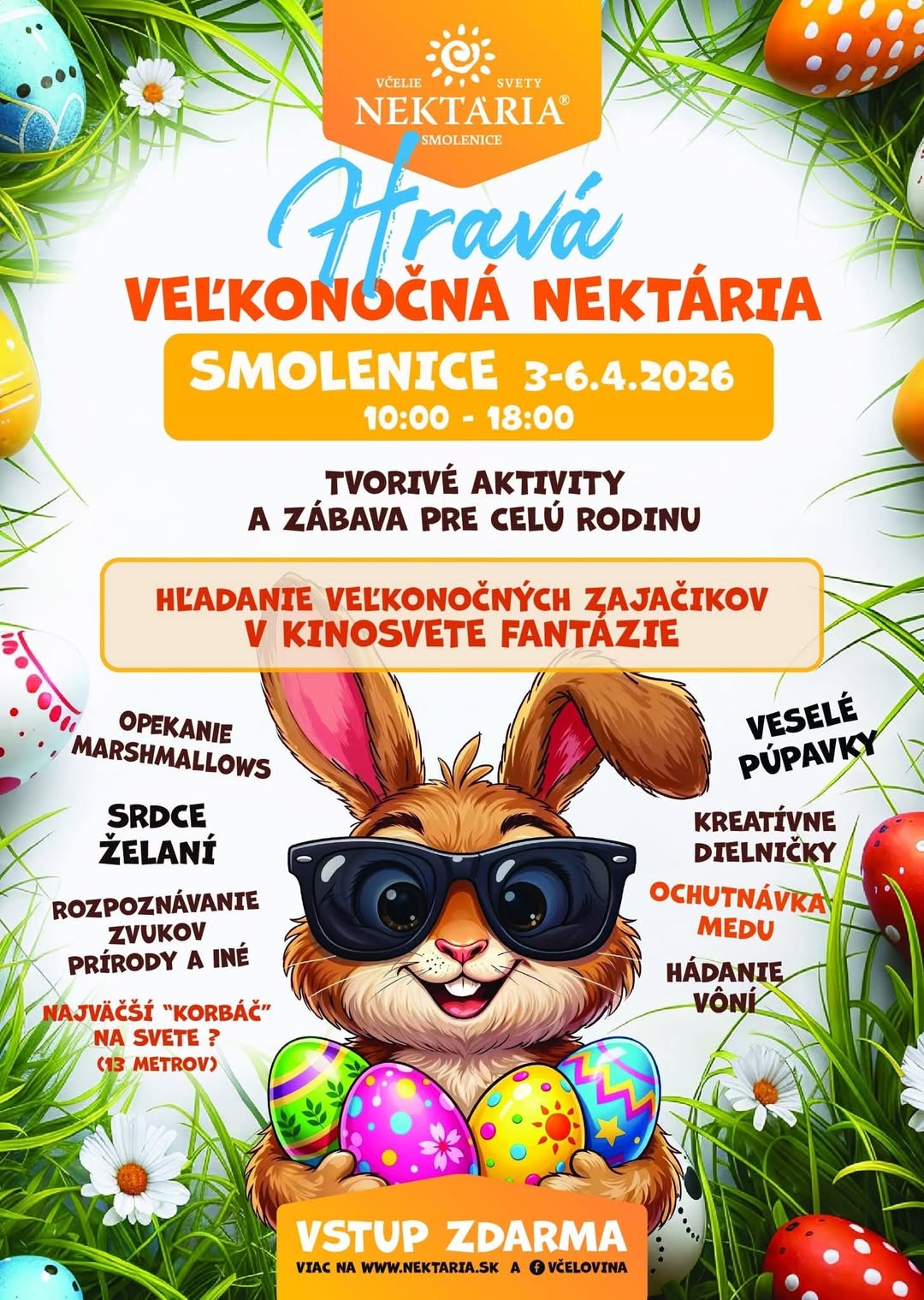 Hravá Veľkonočná Nektária – Smolenice + Pridať do Kalendára Google + export iCal / Outlook 00 dni 00 hodiny 00 minút 00 sekúnd Dátum Pi - Po 04 2026 Čas 10:00 - 18:00 Zdieľajte túto udalosť