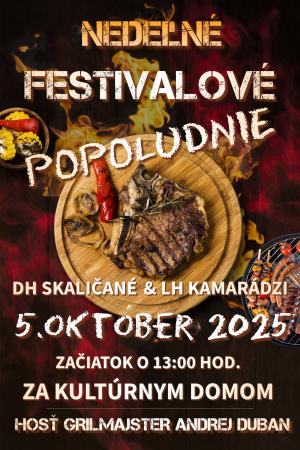 O vaše chuťové poháriky sa opäť postará grilmajster Andrej Duban, ktorý predvedie svoje kulinárske umenie priamo na mieste. Tiež sa môžete tešiť na lahodné jedlá rôznych druhov. O skvelú atmosféru sa postará: DH SKALIČANÉ a LH KAMARÁDZI.